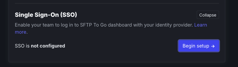 SFTP To Go now supports SAML based authentication for your organization, with popular identity providers such as Okta, Entra ID, Google Workspace, custom SAML or OIDC and more. This is enabled for our enterprise customers. Contact us by replying to this email to get more information.