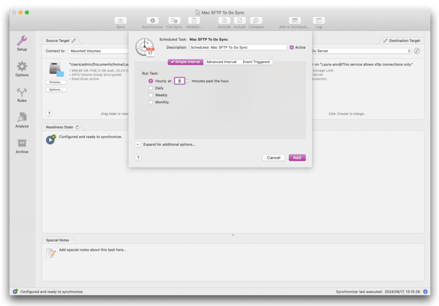 Ready to set up and use ChronoSync for syncing your local Mac with an SFTP To Go server?