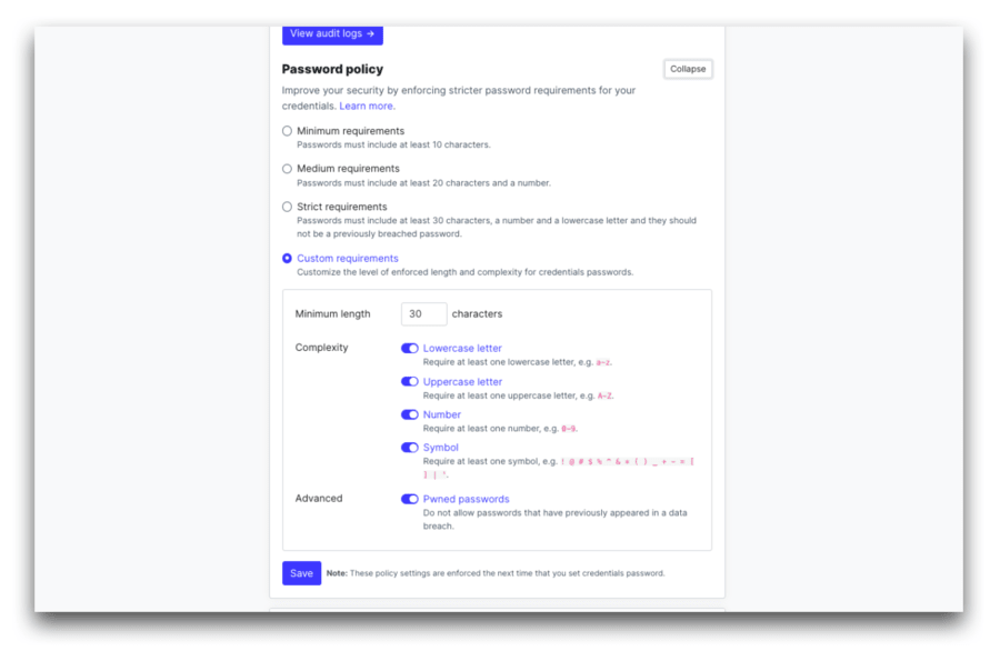 - Password policies: It’s vital to enforce strong password policies. Ensure your passwords are complex enough—mix up letters, numbers, and symbols. In SFTP To Go, you can define these requirements in the settings, making sure all user passwords meet the minimum security standards.